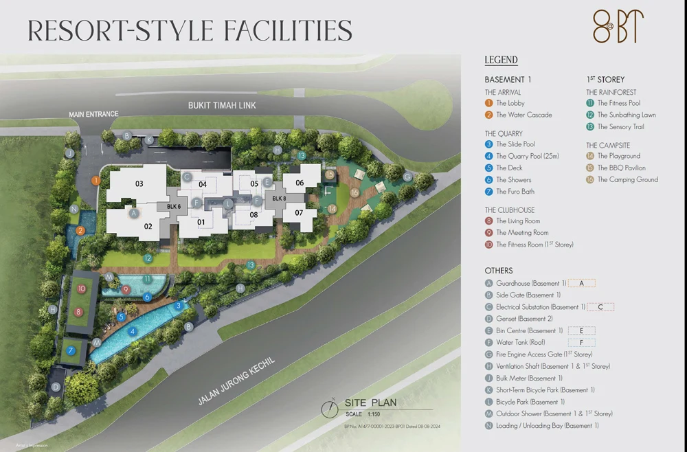 Residents at 8@BT indulge in a holistic, resort-inspired lifestyle with an impressive suite of facilities: unwind by the 25-meter Quarry Pool, rejuvenate in the Japanese-inspired Furo bath, or explore lush sensory trails and tranquil gardens. Community-centric amenities such as the welcoming clubhouse, well-equipped gym, BBQ pavilions, and children’s playground make everyday living both comfortable and enriching. The vibrant locale places you steps from Bukit Timah Plaza, Beauty World Centre, and famous hawker fare, with parks and nature reserves like Bukit Timah Nature Reserve adding an invigorating touch of greenery to daily life.