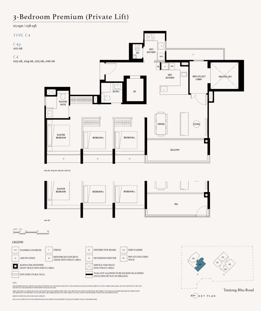 | 3 Bedroom Premium (Private Lift) | 1,238 – 1,238 | 5 | From $3,451,544 |