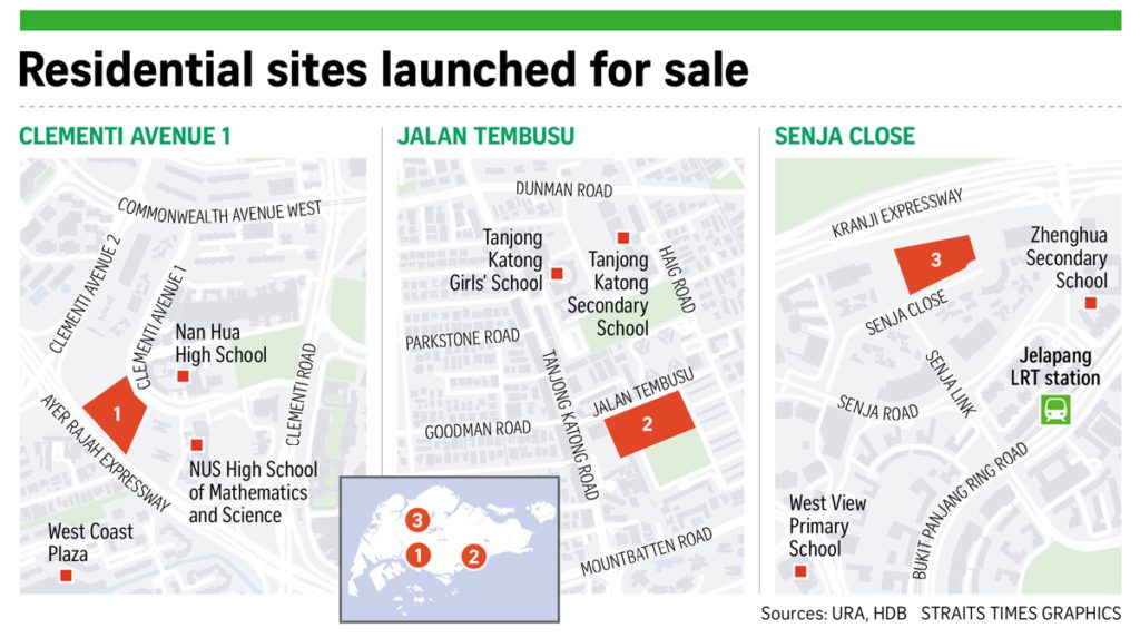 Launched by the Urban Redevelopment Authority (URA), the Jalan Tembusu site is the largest of the three, with an area of 20,572.1 square metres (sq m) and a maximum gross floor area (GFA) of 72,003 sq m. It could yield about 825 units, based on a maximum height of between 80 and 85 m.
