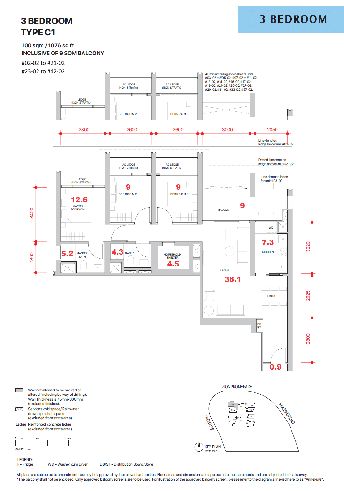 | 3 BEDROOM | 1,033 – 1,076 | 80 | TBA |