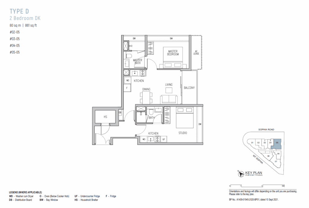 | 1 Bedroom+Study | 570 – 592 | 10 | From $1,692,900 |